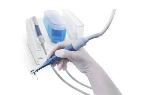 Для обработки видимой поверхности врач использует прямые насадки. Поддесневые камни, приводящие к потере зубов, удаляются гибким изогнутым зондом. На насадку поступает полировальная суспензия с частицами гидроксиапатита кальция, которая бережно полирует корни, заполняет микротрещины и снижает чувствительность зубов. Обычно процедура длится не более часа, хотя иногда требуется 2-3 посещения.
